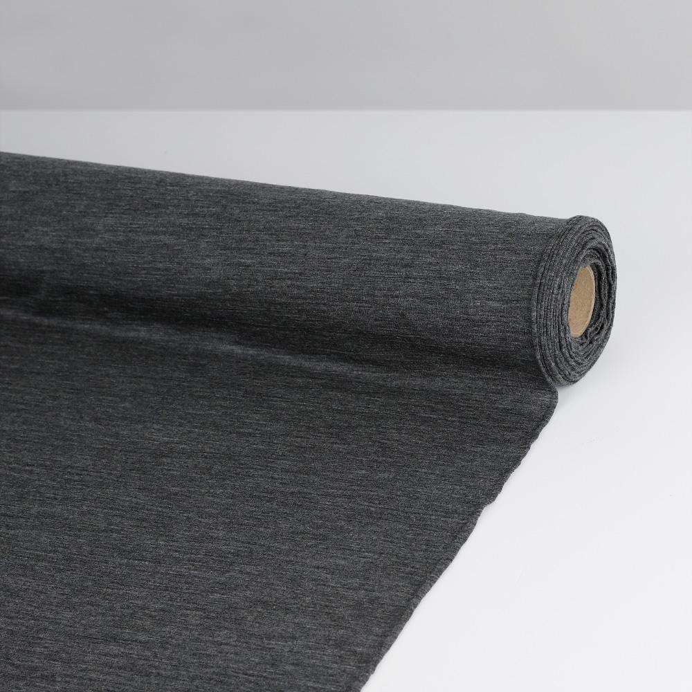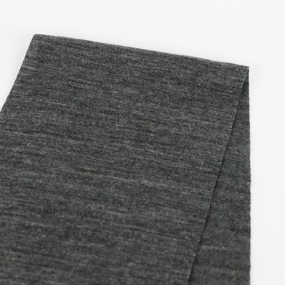 // A super soft, lightweight single jersey knit merino in a classic dark grey carbon marle colour. This marle fabric has natural two-way stretch making it perfect for singlets, t-shirts and summer cardigans. A great summer weight or ideal for layering up in winter. Merino wool jersey is an amazing trans-seasonal fabric and is ideal for a wide range of womenswear, menswear, sportswear and childrenswear.